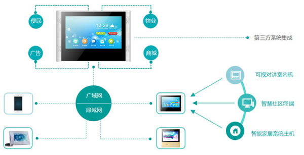 數字化技術是社會發展的必然趨勢,社區建設也必須走數字之路。數字技術提高了信息采集、傳播、處理、顯示的性能,增強了安全性和抗干擾的能力。從技術方面來看,可視對講數字化后,很好地解決了模擬系統很難解決的兩個聯網主要問題:長距離的音視頻傳輸問題和聯網多通道問題,并且能夠以數字可視終端作為節點,實現與家居報警、家居照明系統、家電控制系統的整合。集成多種社區功能,如公告、留影/留言、電子相冊、安防報警、門禁、智能家居、社區購物,社區醫療等功能和增值服務。