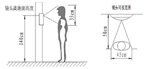 5) 主機安裝高度不能過高,主機鏡頭離地面高度為140CM-150CM為最適合。