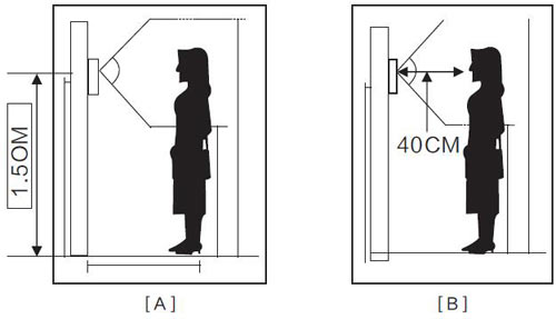 2、室內機安裝于離地面1.5米的墻壁上(如下圖A),且盡量保持表面干燥,嚴禁在室內機上灑水。