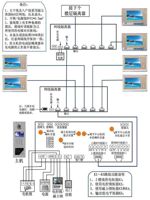 5、分機不能對講:檢查分機喇叭和各端口的連線是否正確;