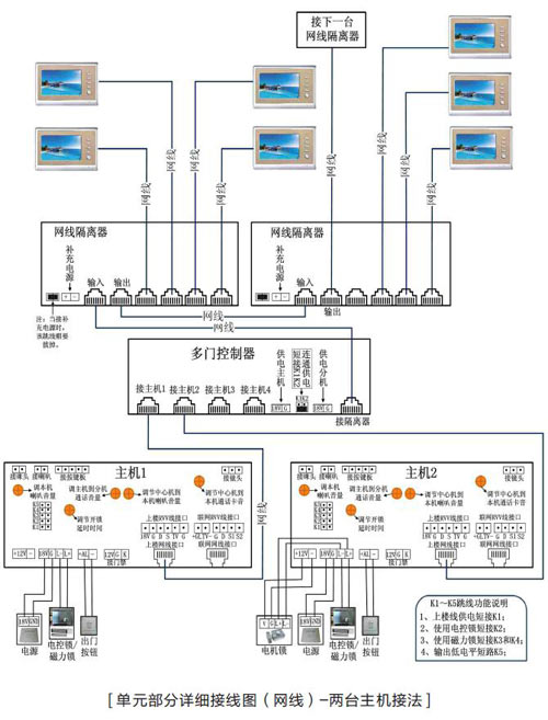 當一個單元中有多能主機在使用時,必須得設置主、副機號,以決定用戶按下監視鍵時監控哪個門口的圖像。因為監視時只能監視主機而不能監視副機。但并不影響來訪者呼叫時看到的圖像。哪臺主機呼叫顯示哪個圖像。